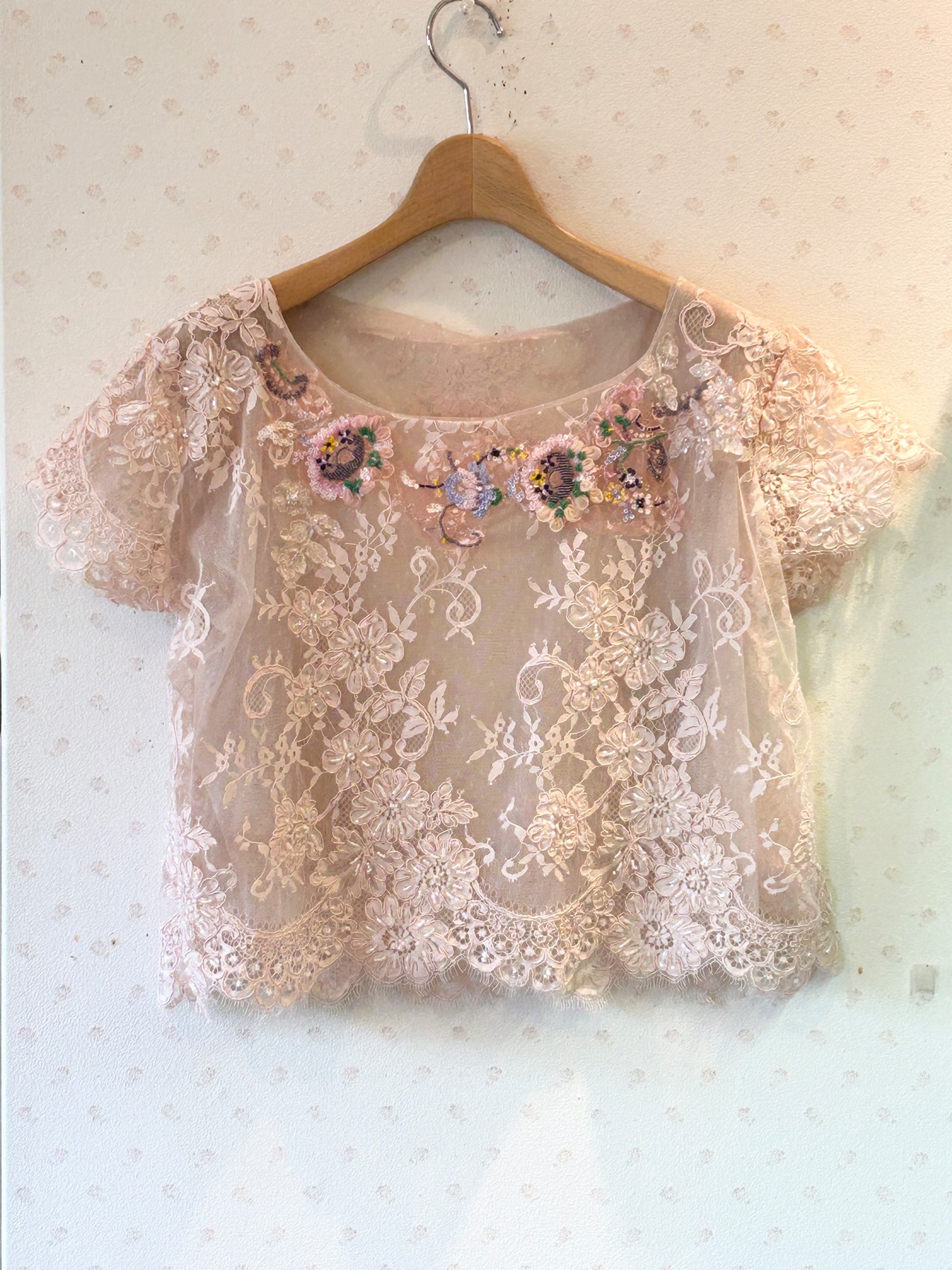 ソルスティスのビーズパーツを使用した美しく繊細なデザインのビーズレースブラウスです。華やかでゴージャスなブラウスは普段使いいはもちろん特別なシーンなどにあなたを引き立てます。