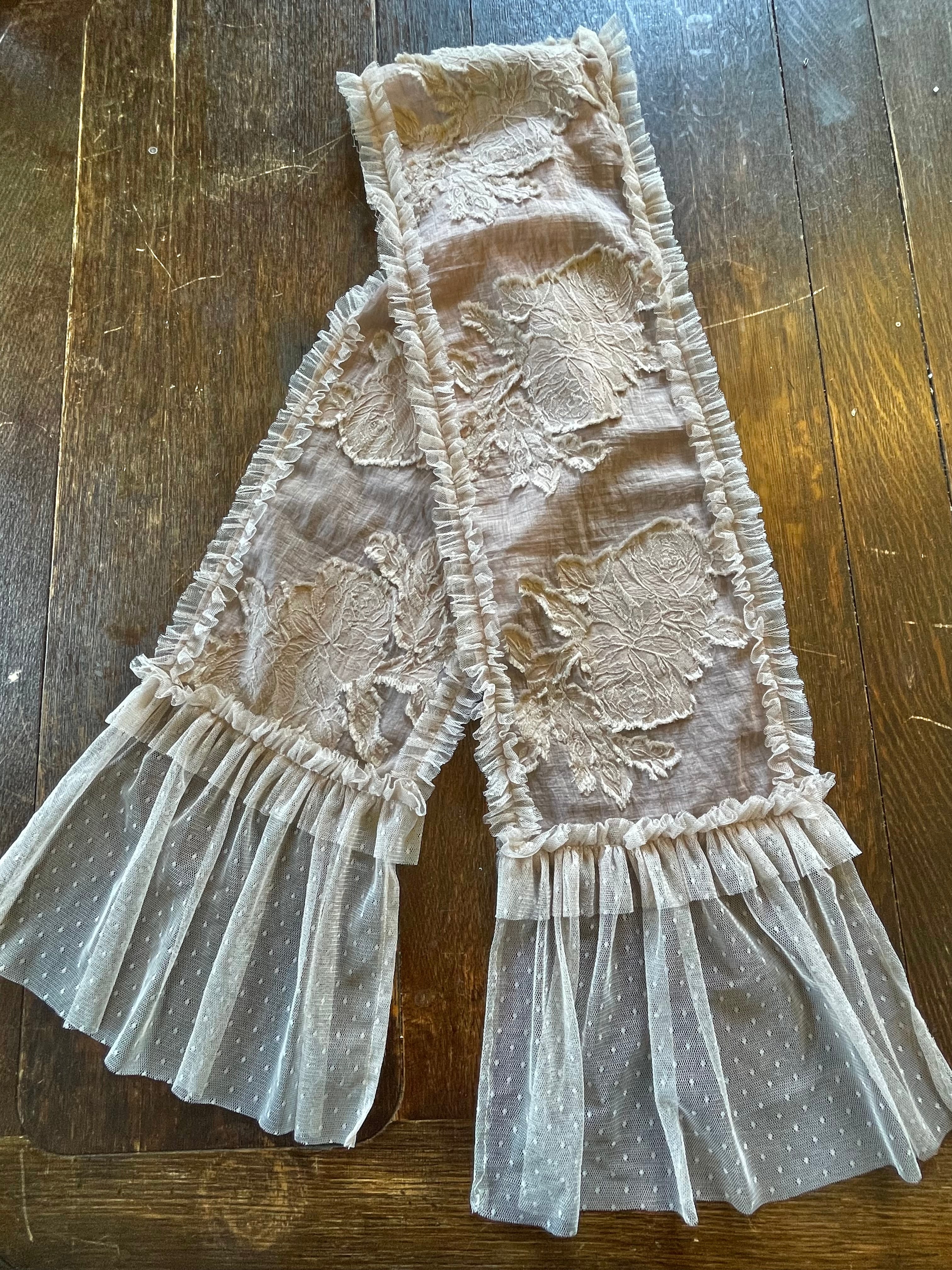 薔薇柄の飾りフリル付きストールは華やかさと優雅さを兼ね備えたおしゃれな小物です。柔らかな素材感が特徴で幅広いシーンで活躍します。
