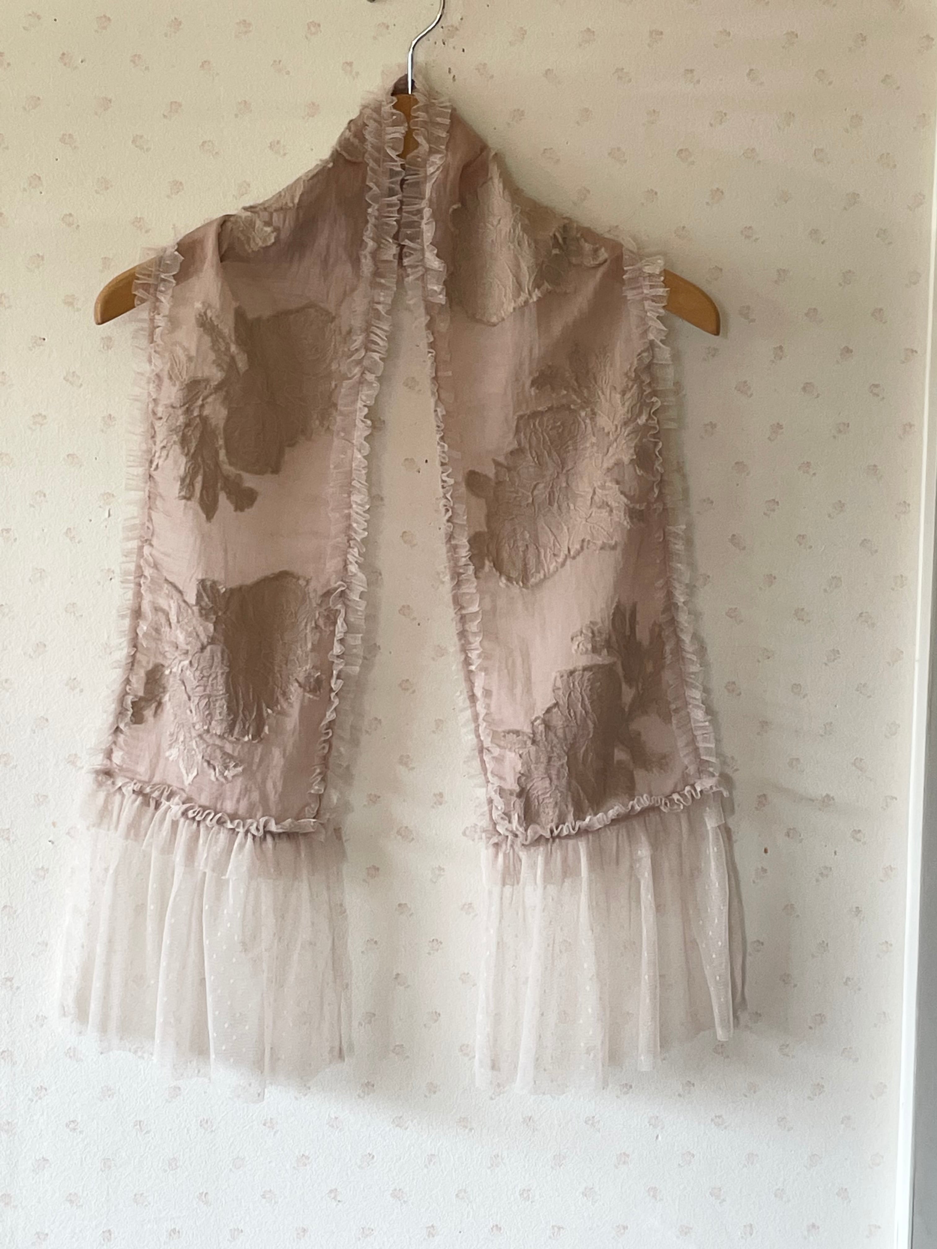 薔薇柄の飾りフリル付きストールは華やかさと優雅さを兼ね備えたおしゃれな小物です。柔らかな素材感が特徴で幅広いシーンで活躍します。