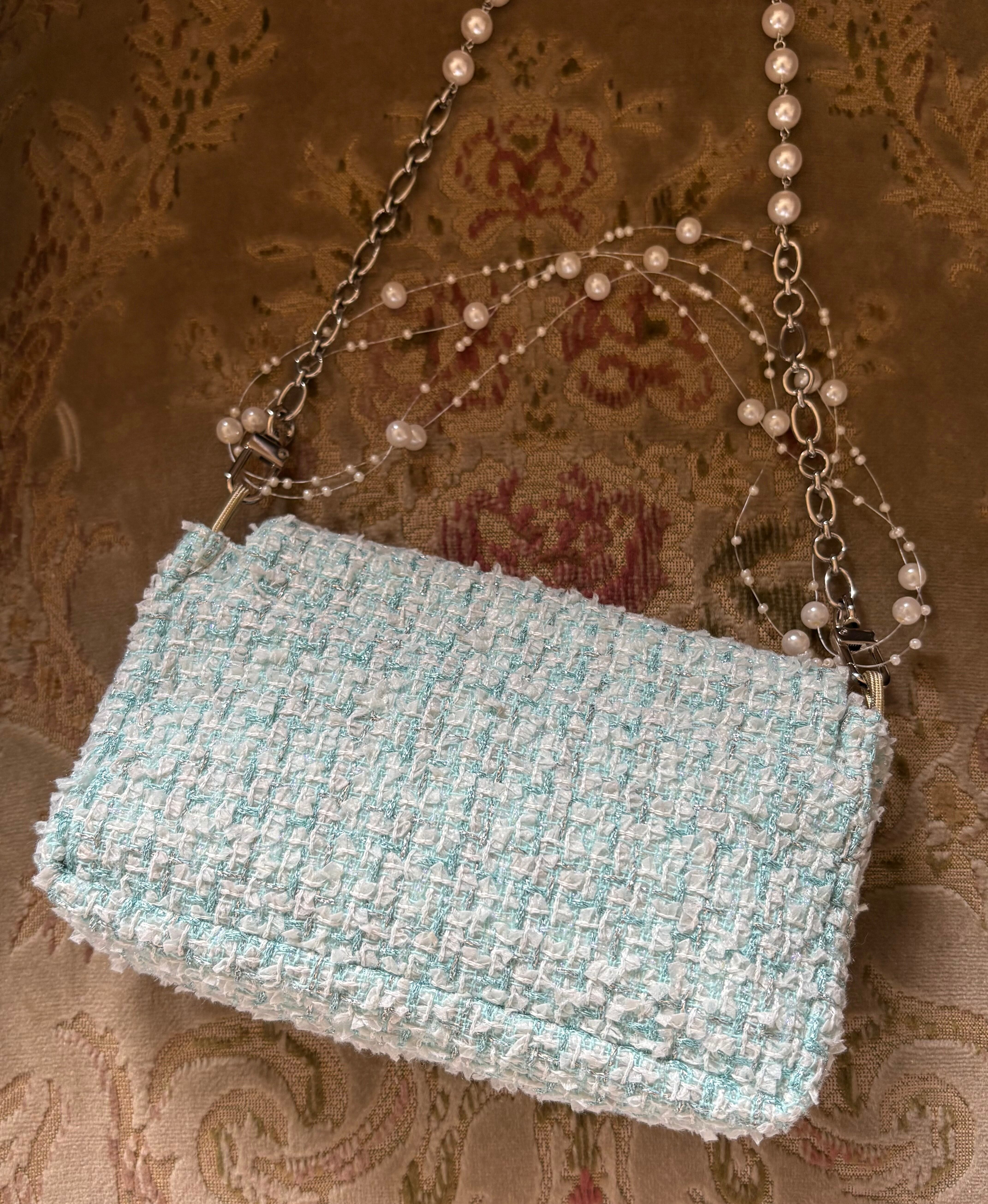 【キット内容】 ツイード生地、内布、接着芯類、飾りパーツ類、