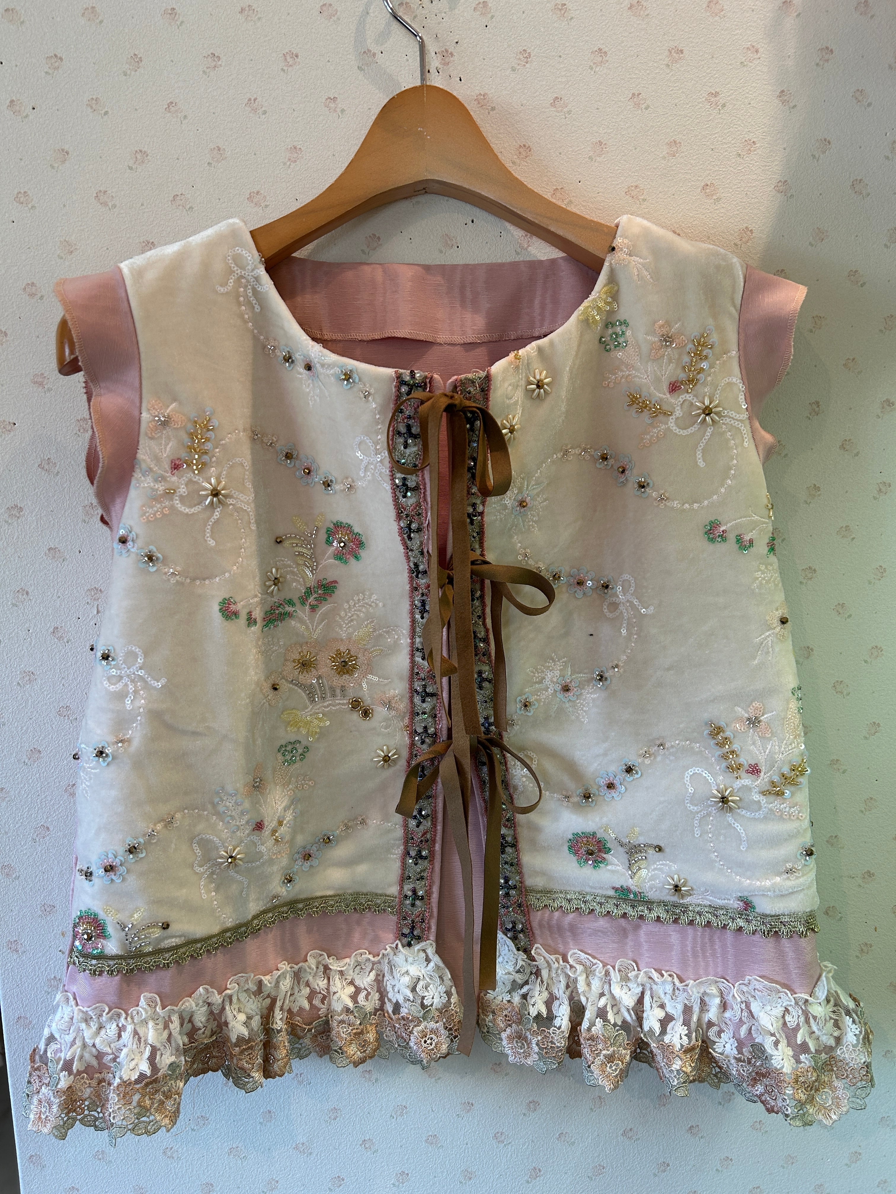 前身頃にビーズ飾りのついたベロアを配置