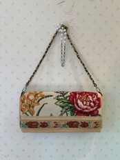 ゴブラン生地、内袋、りぼん、接着芯、ビーズ各色、ショルダーチェーン、説明書