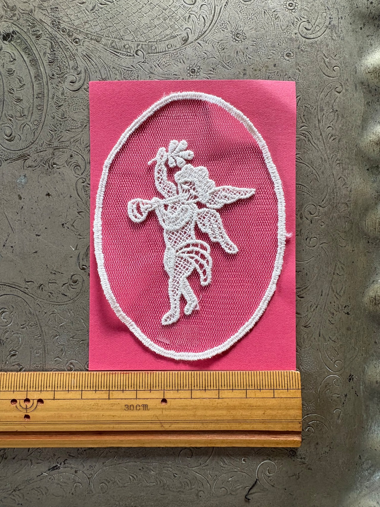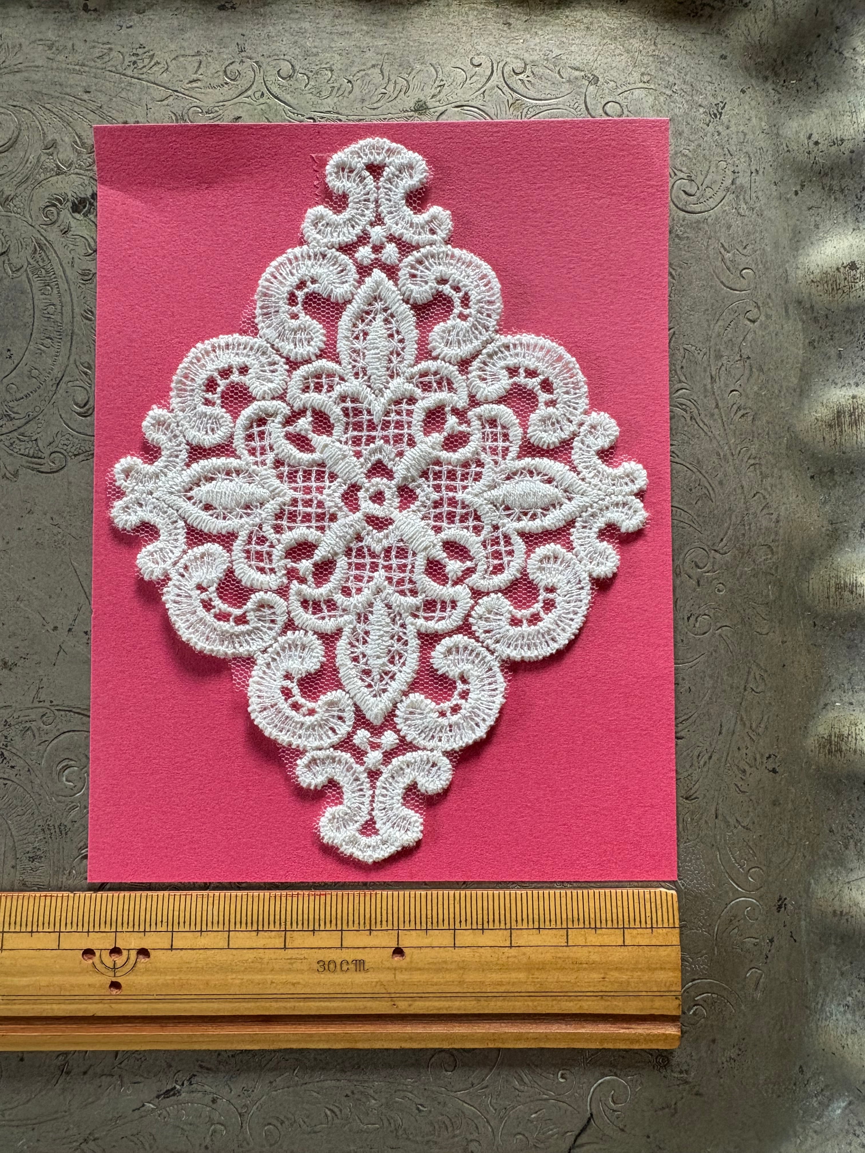 レースモチーフ ダイヤ型 横10㎝縦13㎝ ダイヤ型バラ柄 横10㎝縦13㎝ 楕円型リボン 横7.5㎝縦10㎝ 楕円形天使 横7㎝縦10㎝