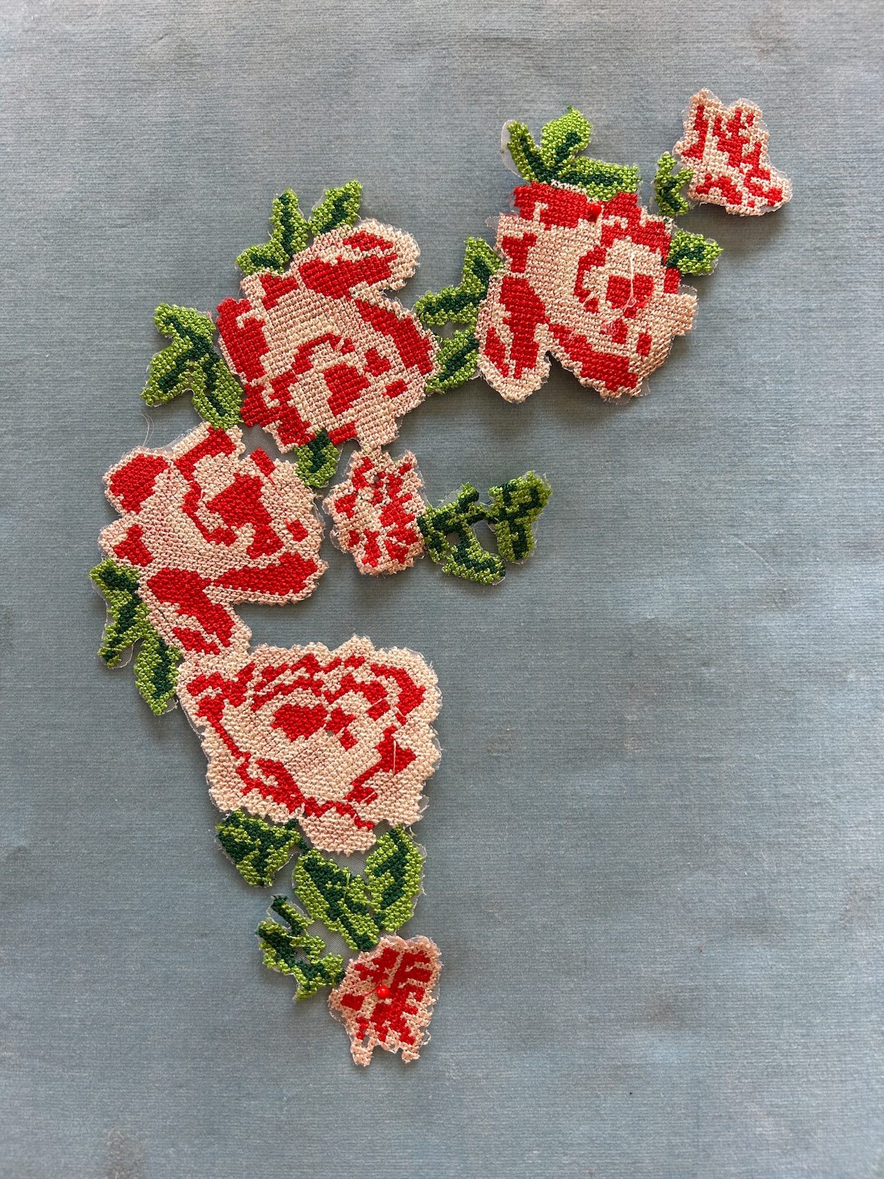 生成りと赤の薔薇とグリーンの濃淡のリーフ
