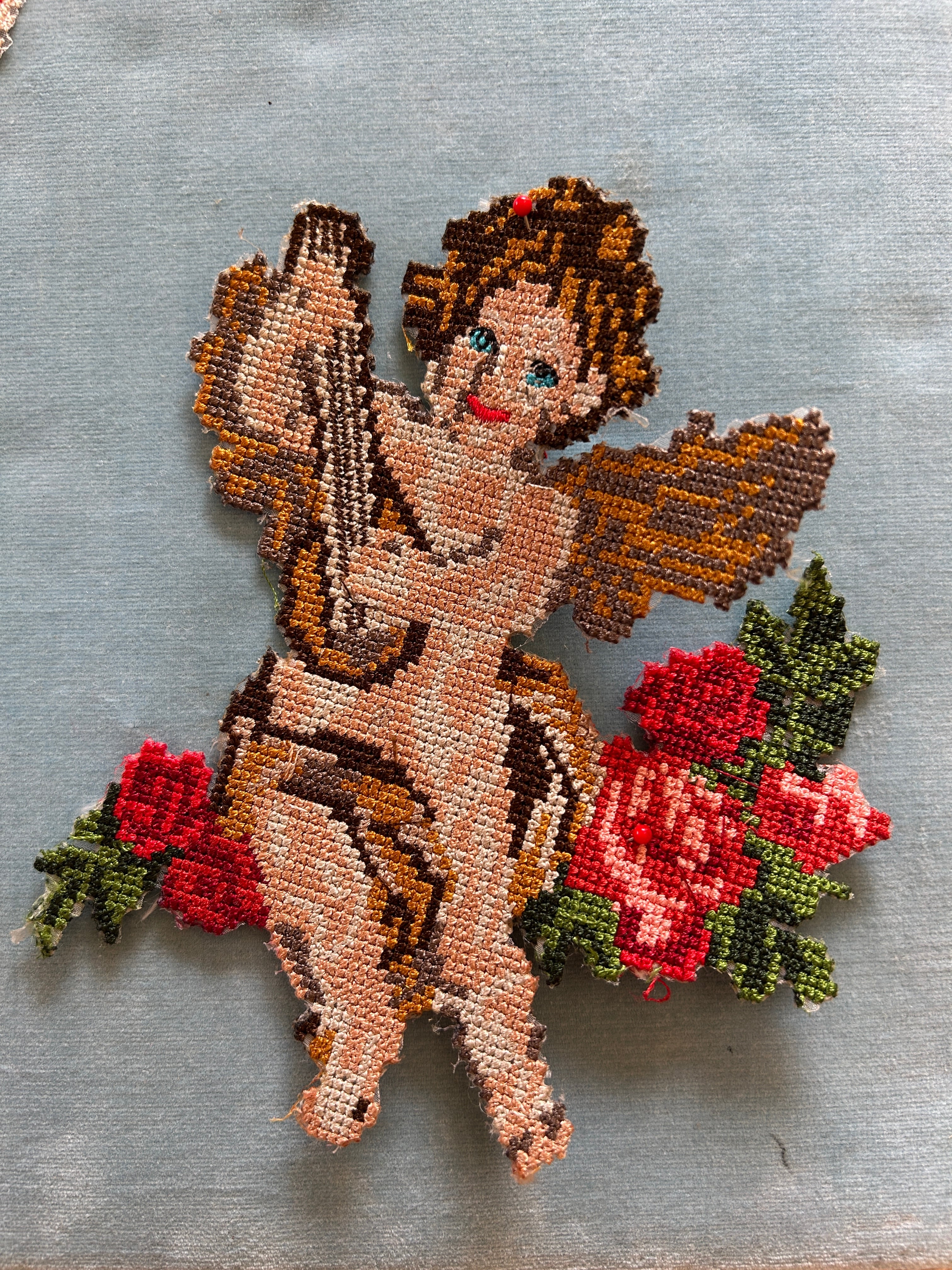 細かなクロスステッチでエンジェルの立体感が出ている