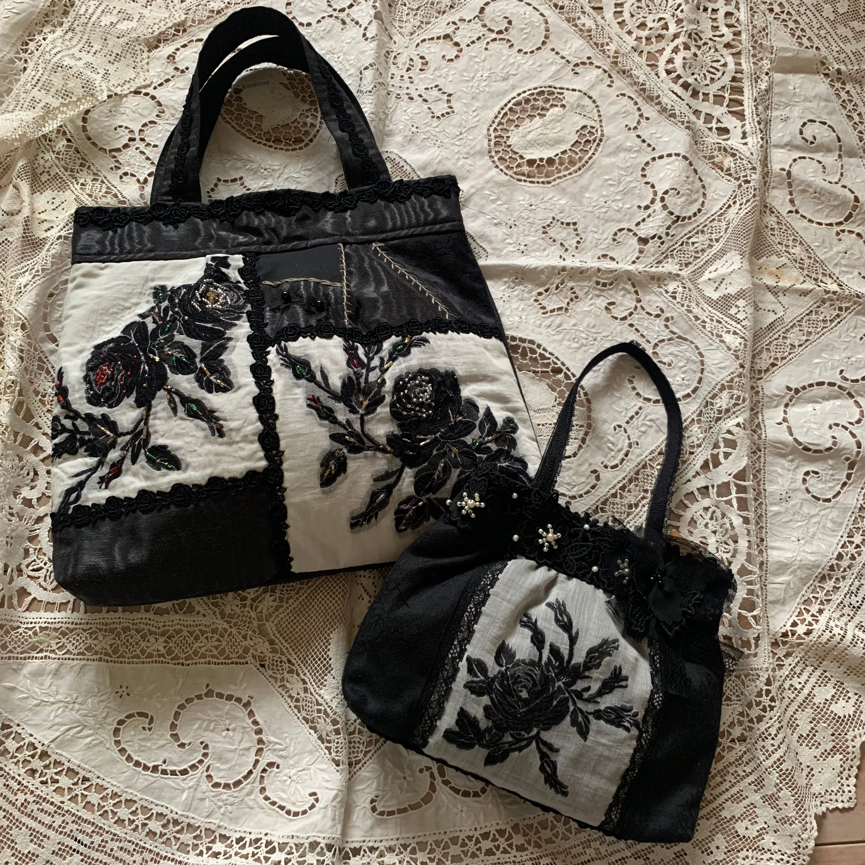 【カット生地】薔薇柄黒モチーフ、ピンクモチーフ(大) | フェステナ・レンテJAM
