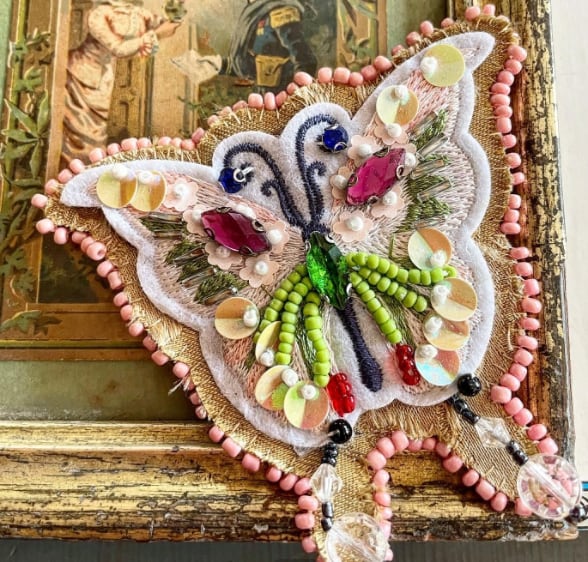 ビーズを刺した蝶のベースに