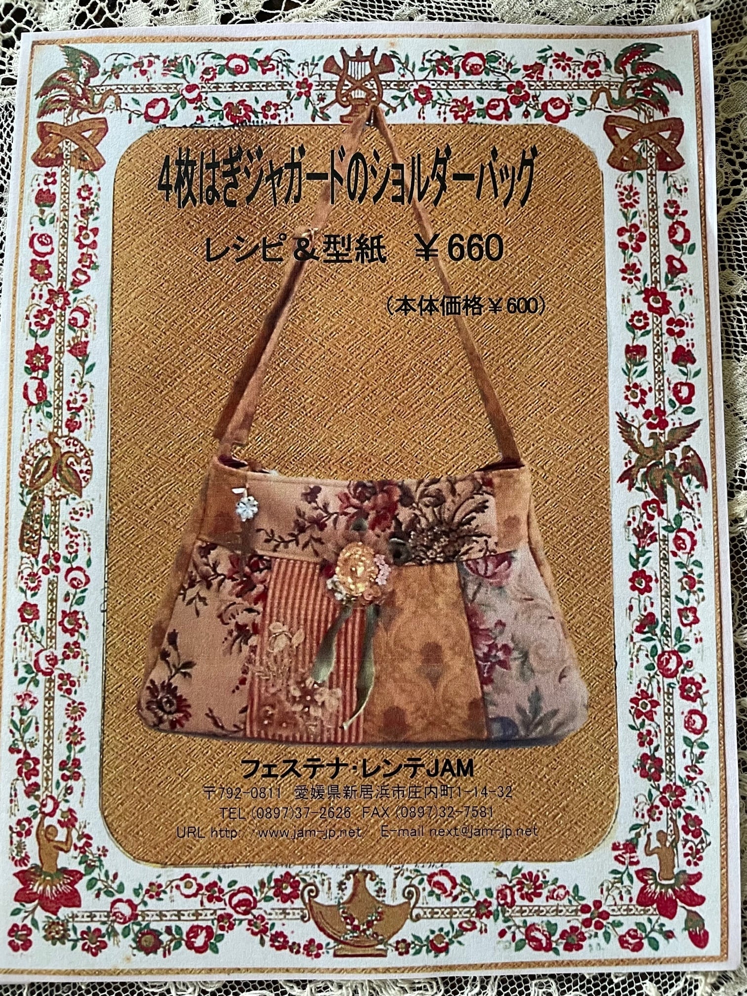 JAMのレシピ ① フリル付きジャガードバッグ ② ショルダーバッグ 作り方の説明 型紙入り どちらかお選びください。