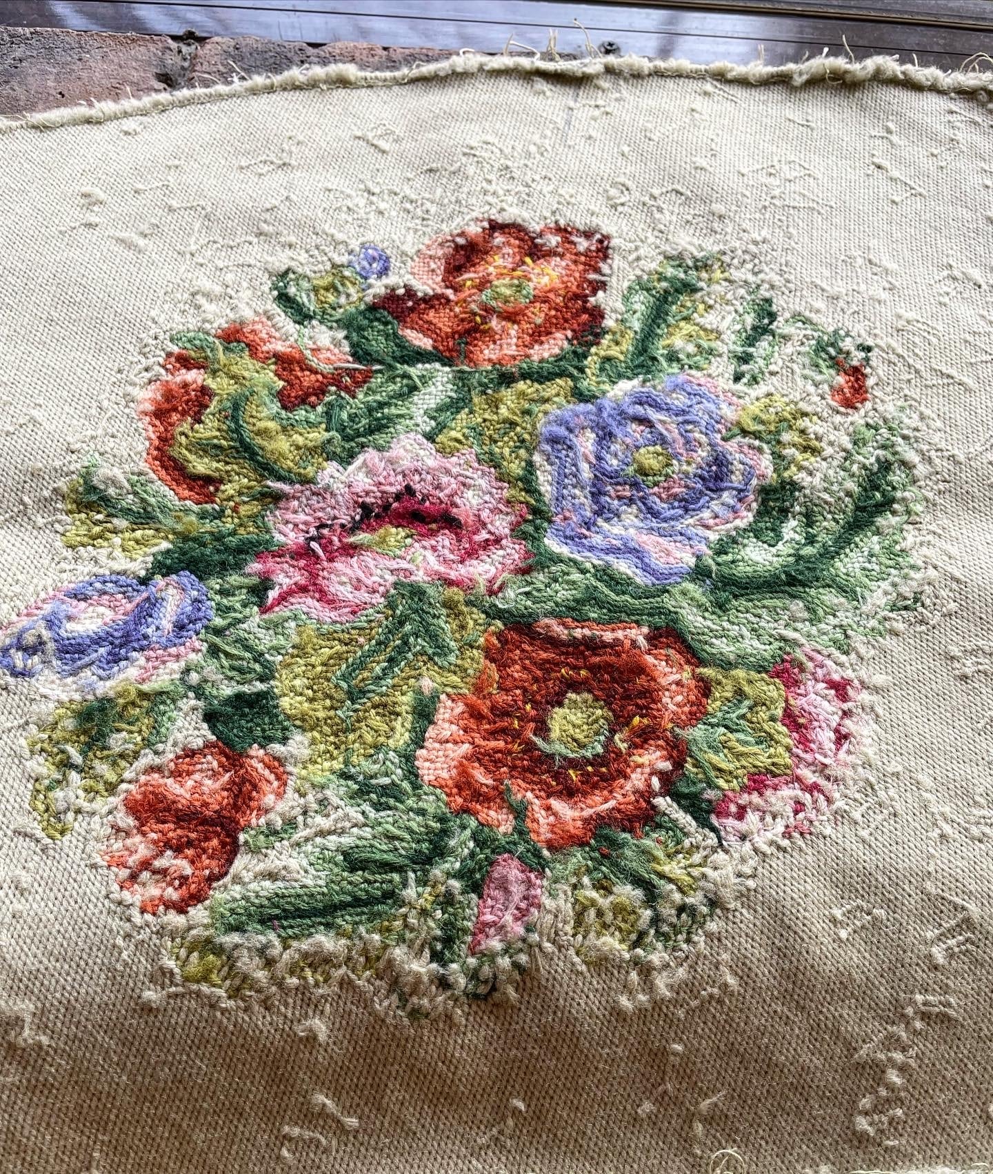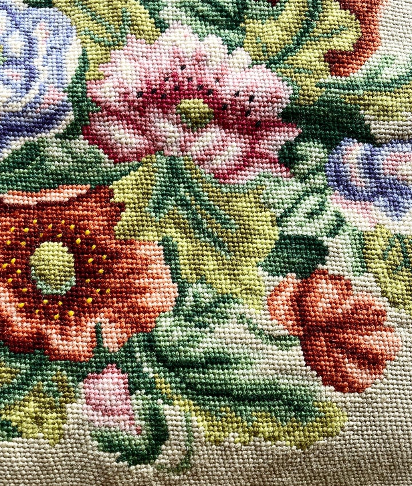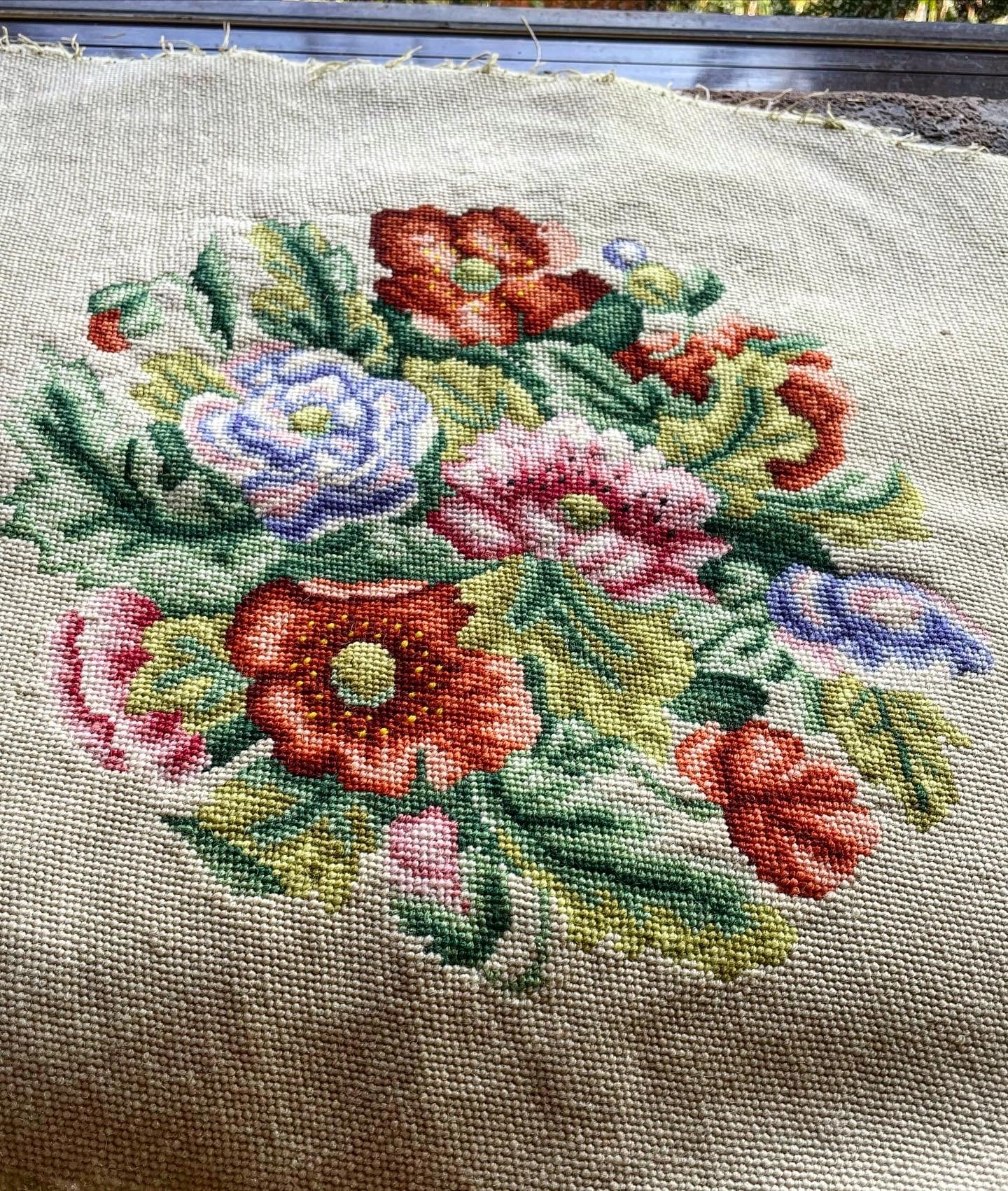 花や葉、ベース全てハーフステッチ 45c×40c しっかりした厚みがある バックやインテリアに最適
