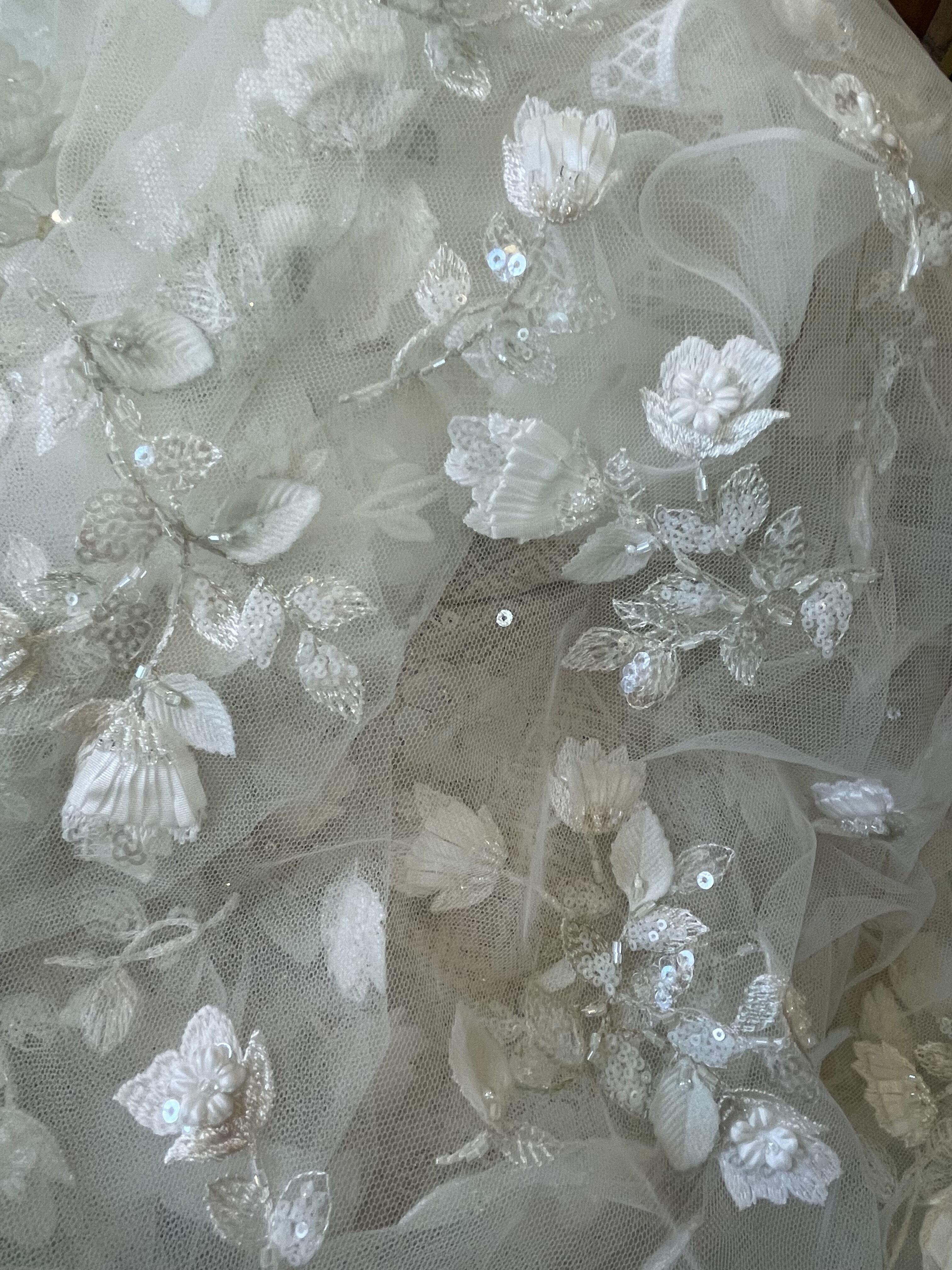 カット済みの花モチーフ付のレース生地
