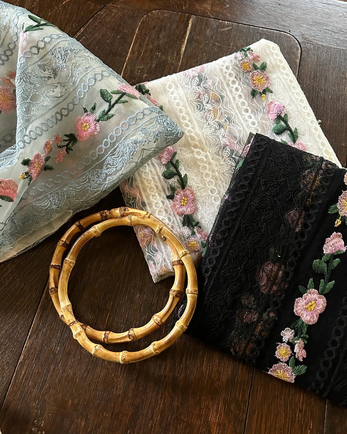 華やかで繊細なレース刺繍生地 立体感のある刺繍が高級感を醸しだす 120c×35cカット販売 プラステック丸持ち手バックのレシピ付き