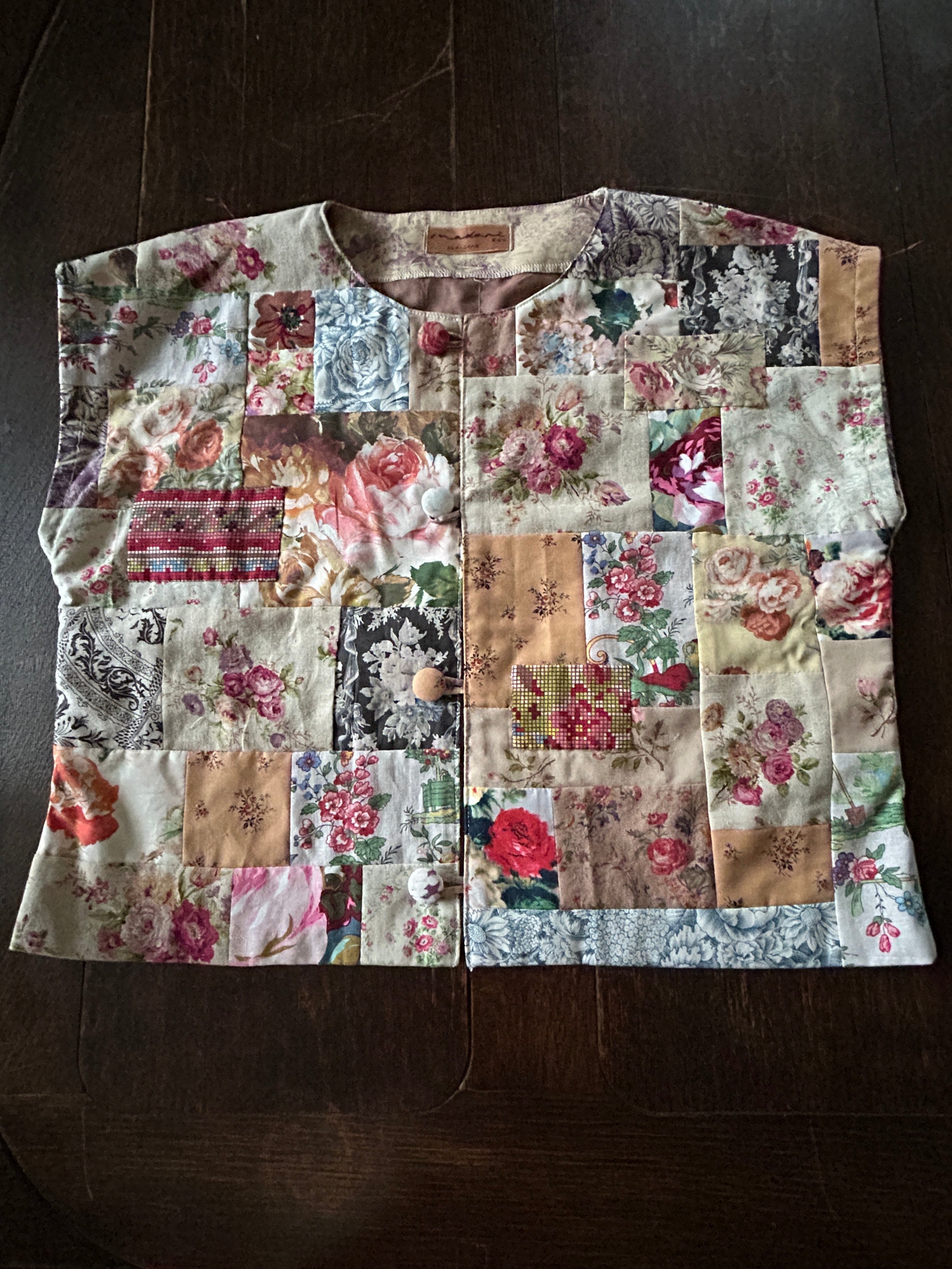 個性豊かな色合わせとパターンによる魅力満点のパッチワークブラウス。